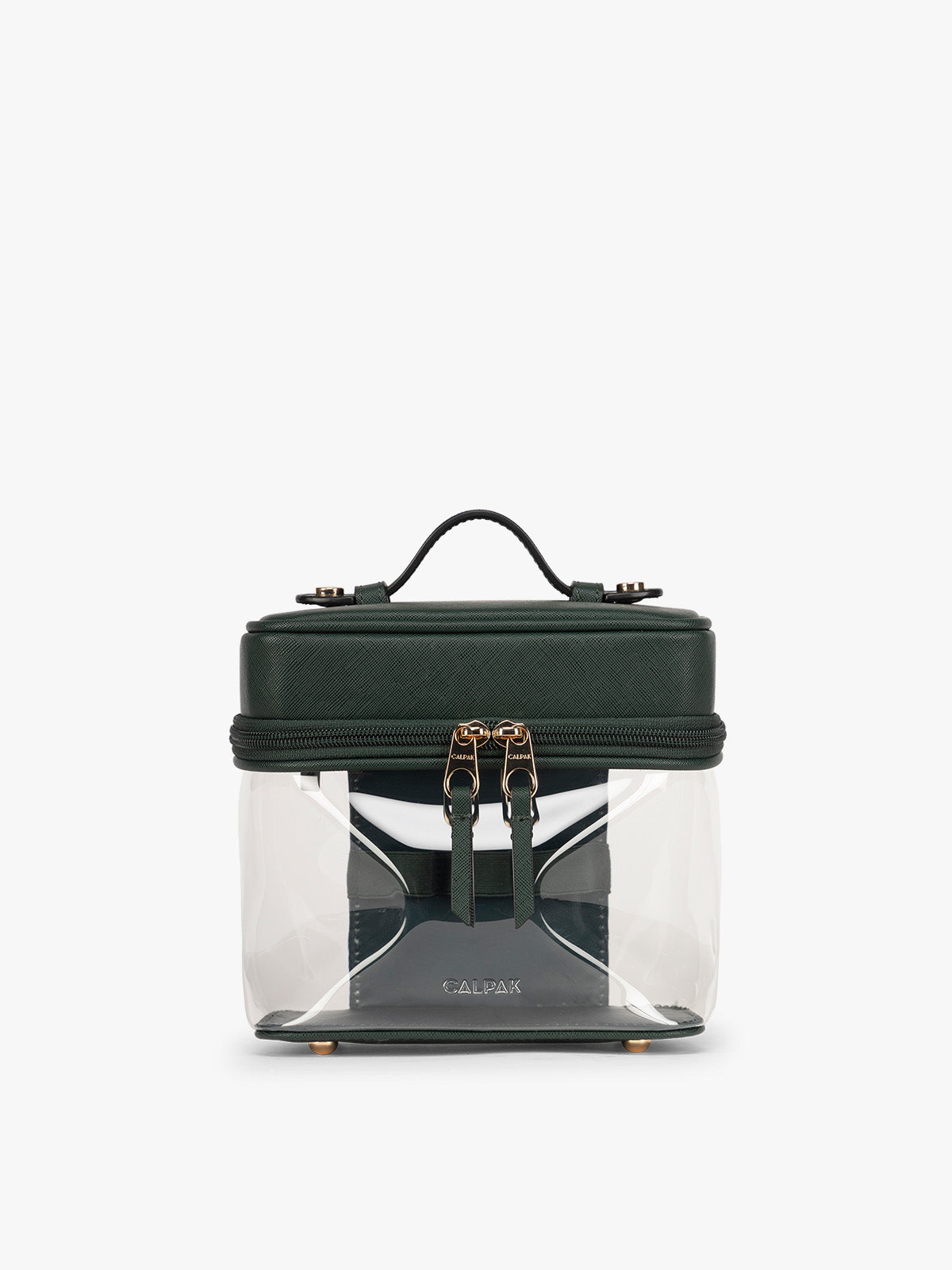 Introducing CALPAK's Clear Train Case with Top Compartment, the ultimate makeup and cosmetics bag for modern travelers. Crafted with transparent PVC panels, lay-flat handles, and a zip-around opening, this versatile travel makeup bag is perfect for on-the-go beauty routines. Equipped with interior pockets and elastic loops, it ensures your essentials stay organized and accessible. Elevate your travel experience with CALPAK's Clear Train Case – your go-to cosmetic companion for effortless journeys.