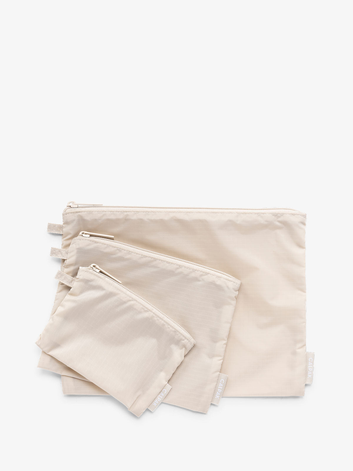Stay organized on-the-go with our versatile 3-piece Packable Pouch Set. Designed in three sizes, these collapsible and reusable zipper bags are ideal for storing cosmetics, chargers, coins, and more. Say goodbye to cluttered bags - our Packable Pouches ensure everything stays neatly organized and easily accessible.