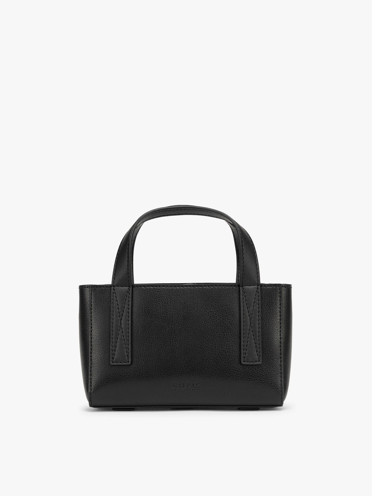 CALPAK Haven Mini Crossbody Tote in black with keys and a lip balm on a concrete surface