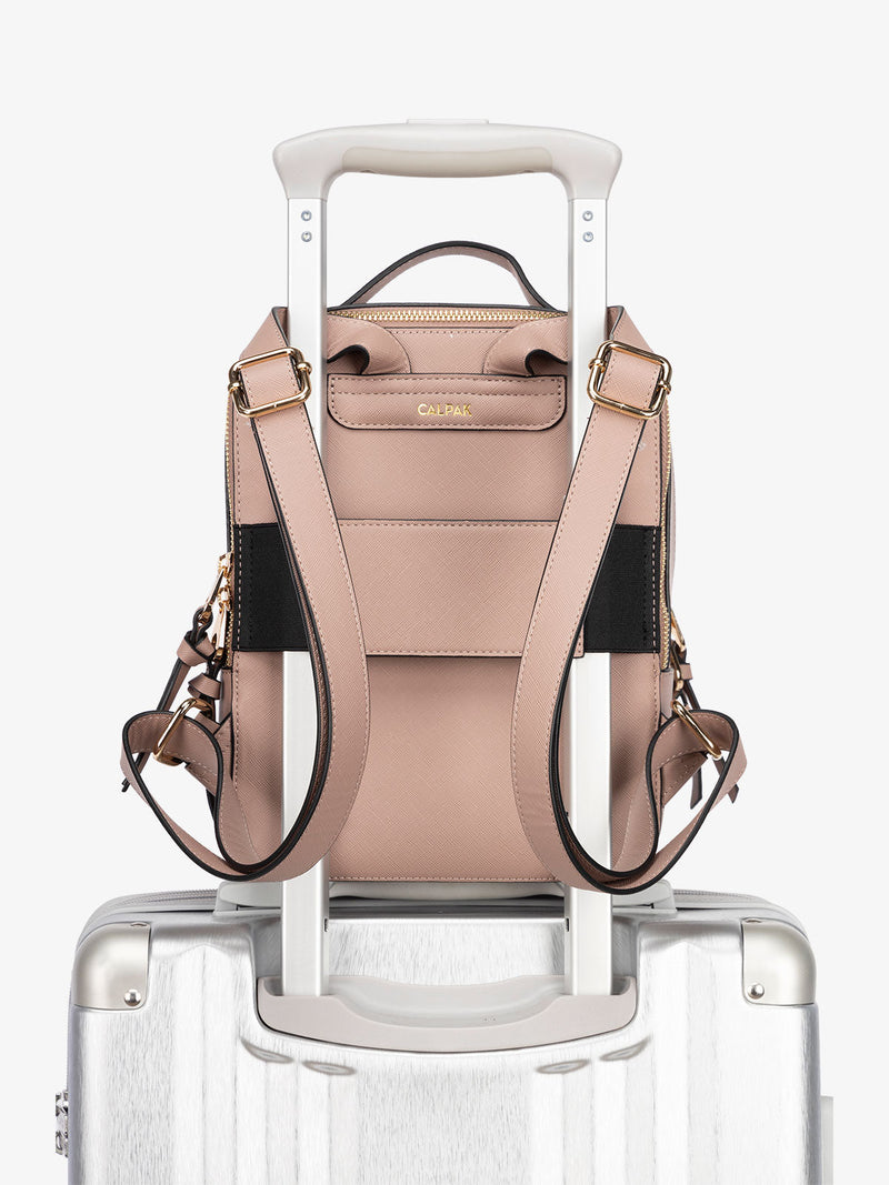 A perfect size for everyday use, this mini backpack might be small, but has ample space for all your essentials, keeping them close as you move about your day hands-free. This small backpack is crafted with distinctive faux-leather stitching, and features adjustable straps and a luggage trolley sleeve which makes it the ideal mini backpack purse and personal item for travelers who go places with a minimalist mindset.