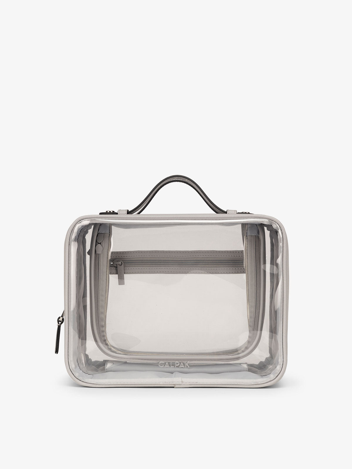 The Large Clear Cosmetic Case is self-care approved and designed to meet all your beauty needs. With two spacious and clear compartments, you won't forget a thing with this large makeup bag. Plus, the top handle makes it a go-to beauty bag for travel, easily flattening to fit perfectly in your luggage or duffel bag.