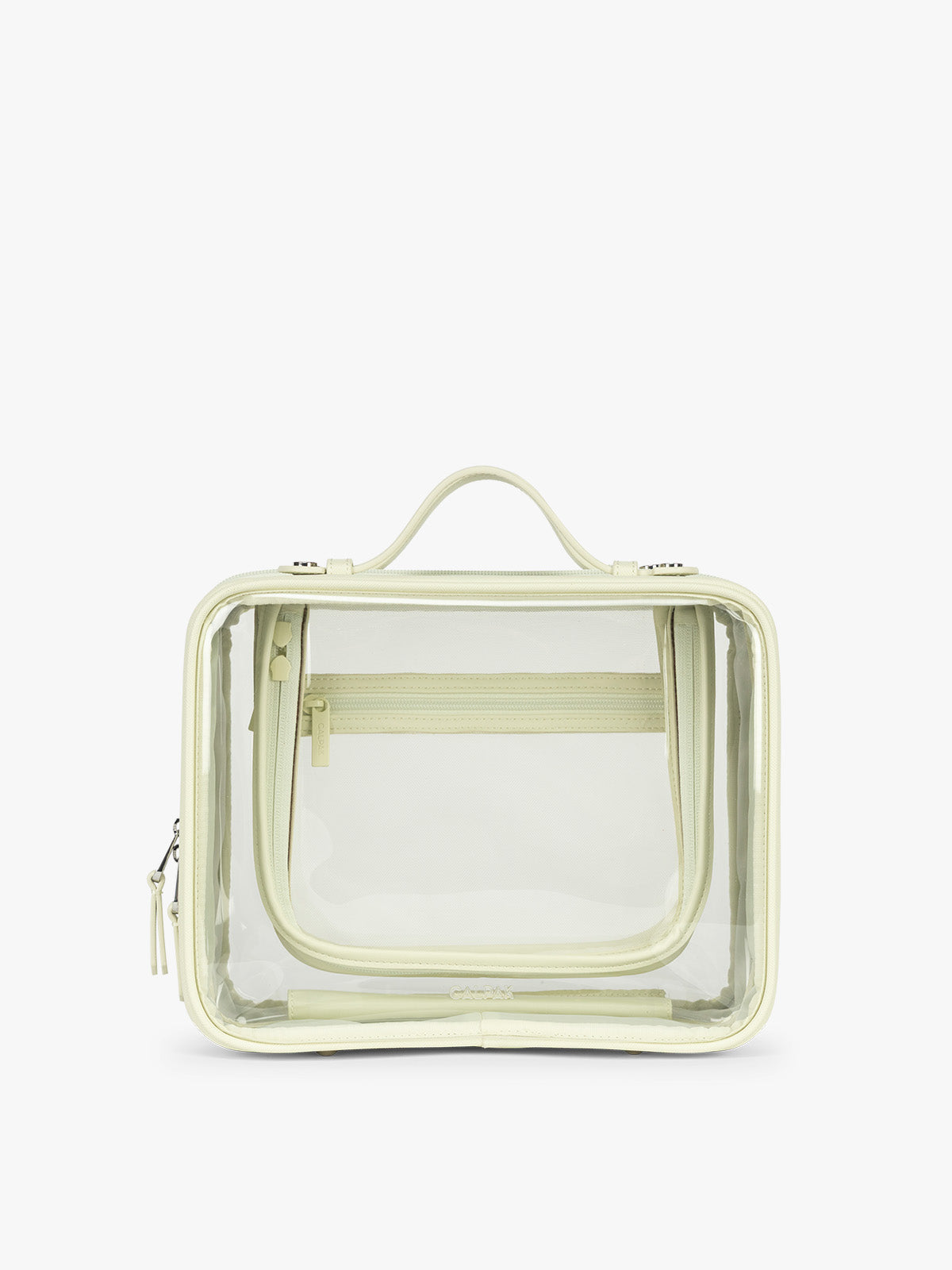 The Large Clear Cosmetic Case is self-care approved and designed to meet all your beauty needs. With two spacious and clear compartments, you won't forget a thing with this large makeup bag. Plus, the top handle makes it a go-to beauty bag for travel, easily flattening to fit perfectly in your luggage or duffel bag.