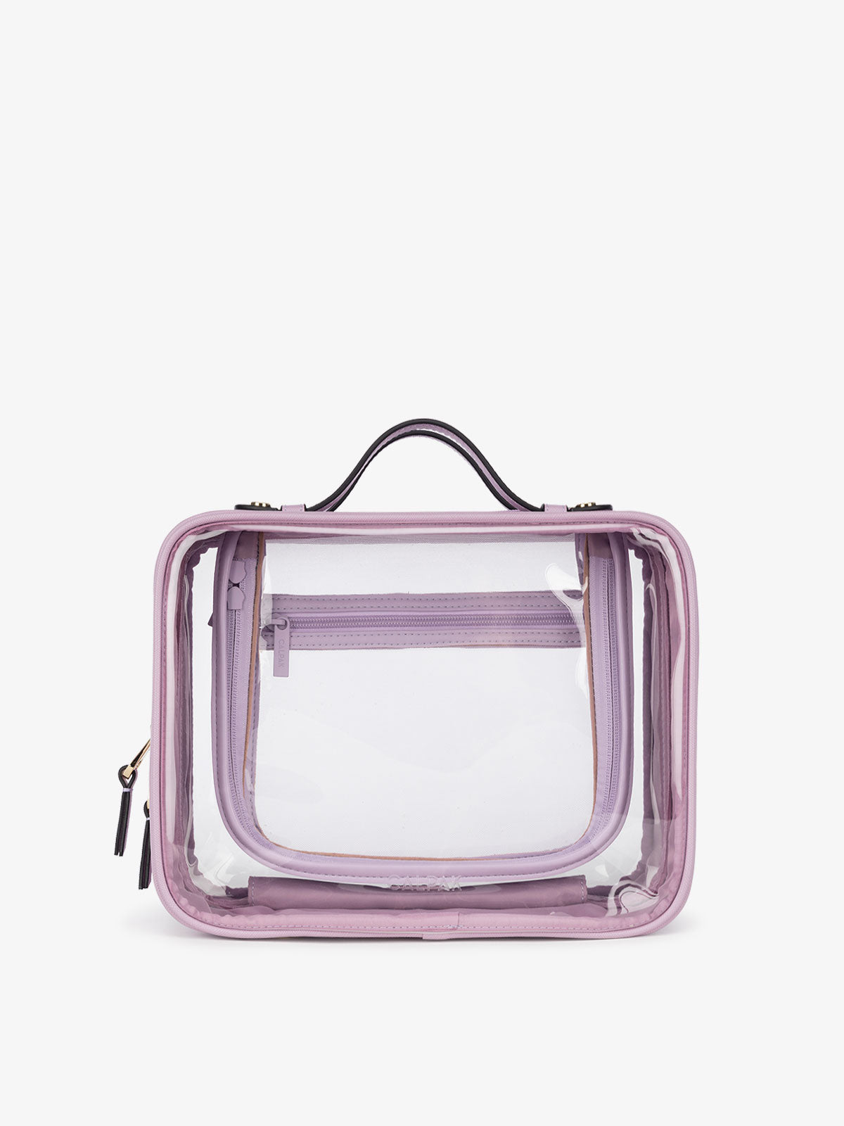 The Large Clear Cosmetic Case is self-care approved and designed to meet all your beauty needs. With two spacious and clear compartments, you won't forget a thing with this large makeup bag. Plus, the top handle makes it a go-to beauty bag for travel, easily flattening to fit perfectly in your luggage or duffel bag.