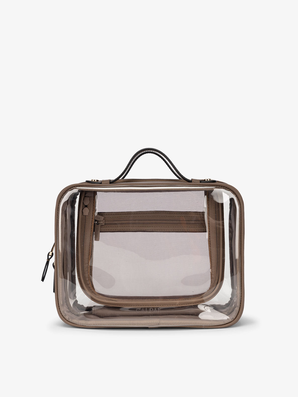 The Large Clear Cosmetic Case is self-care approved and designed to meet all your beauty needs. With two spacious and clear compartments, you won't forget a thing with this large makeup bag. Plus, the top handle makes it a go-to beauty bag for travel, easily flattening to fit perfectly in your luggage or duffel bag.