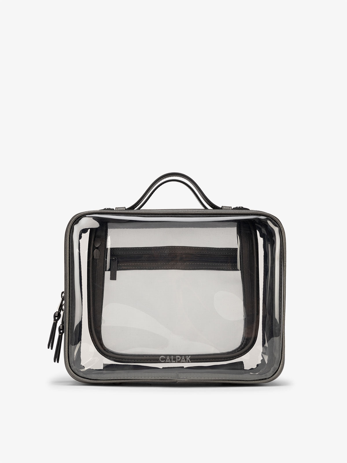 The Large Clear Cosmetic Case is self-care approved and designed to meet all your beauty needs. With two spacious and clear compartments, you won't forget a thing with this large makeup bag. Plus, the top handle makes it a go-to beauty bag for travel, easily flattening to fit perfectly in your luggage or duffel bag.