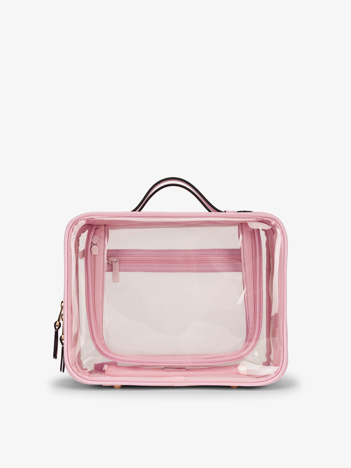 The Large Clear Cosmetic Case is self-care approved and designed to meet all your beauty needs. With two spacious and clear compartments, you won't forget a thing with this large makeup bag. Plus, the top handle makes it a go-to beauty bag for travel, easily flattening to fit perfectly in your luggage or duffel bag.