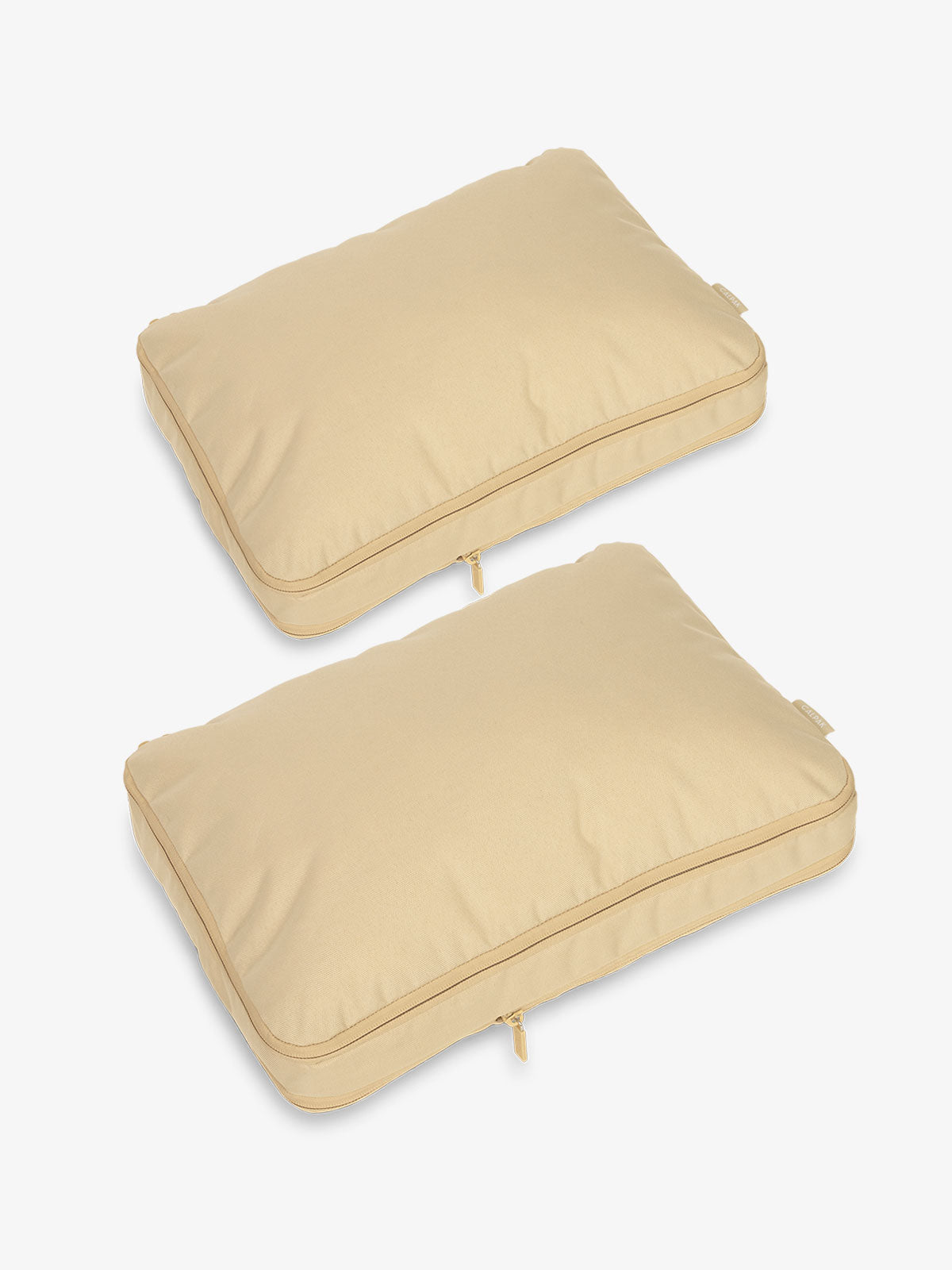 Introducing our space-saving luggage organizers designed to bring order to chaos. Our set of 2 Large Compression Packing Cubes, made from durable material, is expandable by 4.5 inches, allowing you to store roughly 2-5 days worth of clothes or bulkier items like coats while maximizing the space in your luggage. Try this packing hack: keep one of these large packing cubes empty for the return journey and indulge in some souvenirs.