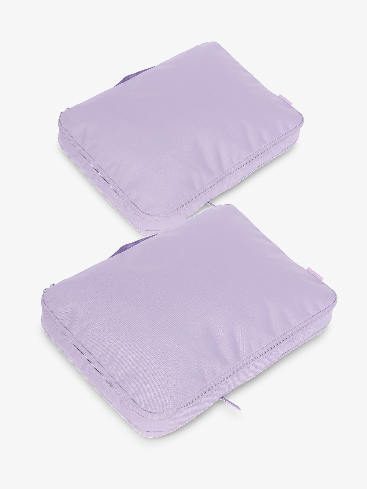 Introducing our space-saving luggage organizers designed to bring order to chaos. Our set of 2 Large Compression Packing Cubes, made from durable material, is expandable by 4.5 inches, allowing you to store roughly 2-5 days worth of clothes or bulkier items like coats while maximizing the space in your luggage. Try this packing hack: keep one of these large packing cubes empty for the return journey and indulge in some souvenirs.