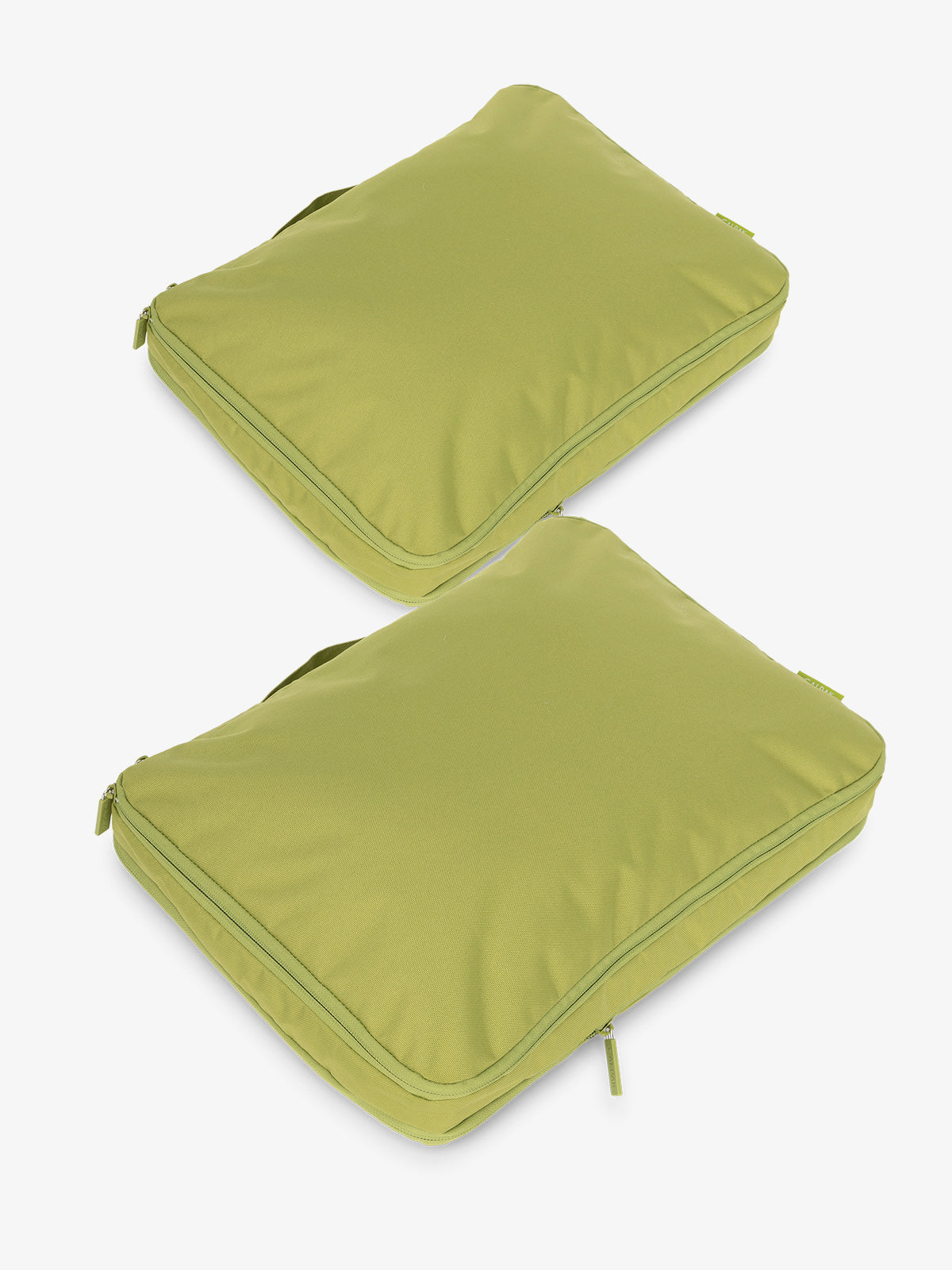 Introducing our space-saving luggage organizers designed to bring order to chaos. Our set of 2 Large Compression Packing Cubes, made from durable material, is expandable by 4.5 inches, allowing you to store roughly 2-5 days worth of clothes or bulkier items like coats while maximizing the space in your luggage. Try this packing hack: keep one of these large packing cubes empty for the return journey and indulge in some souvenirs.