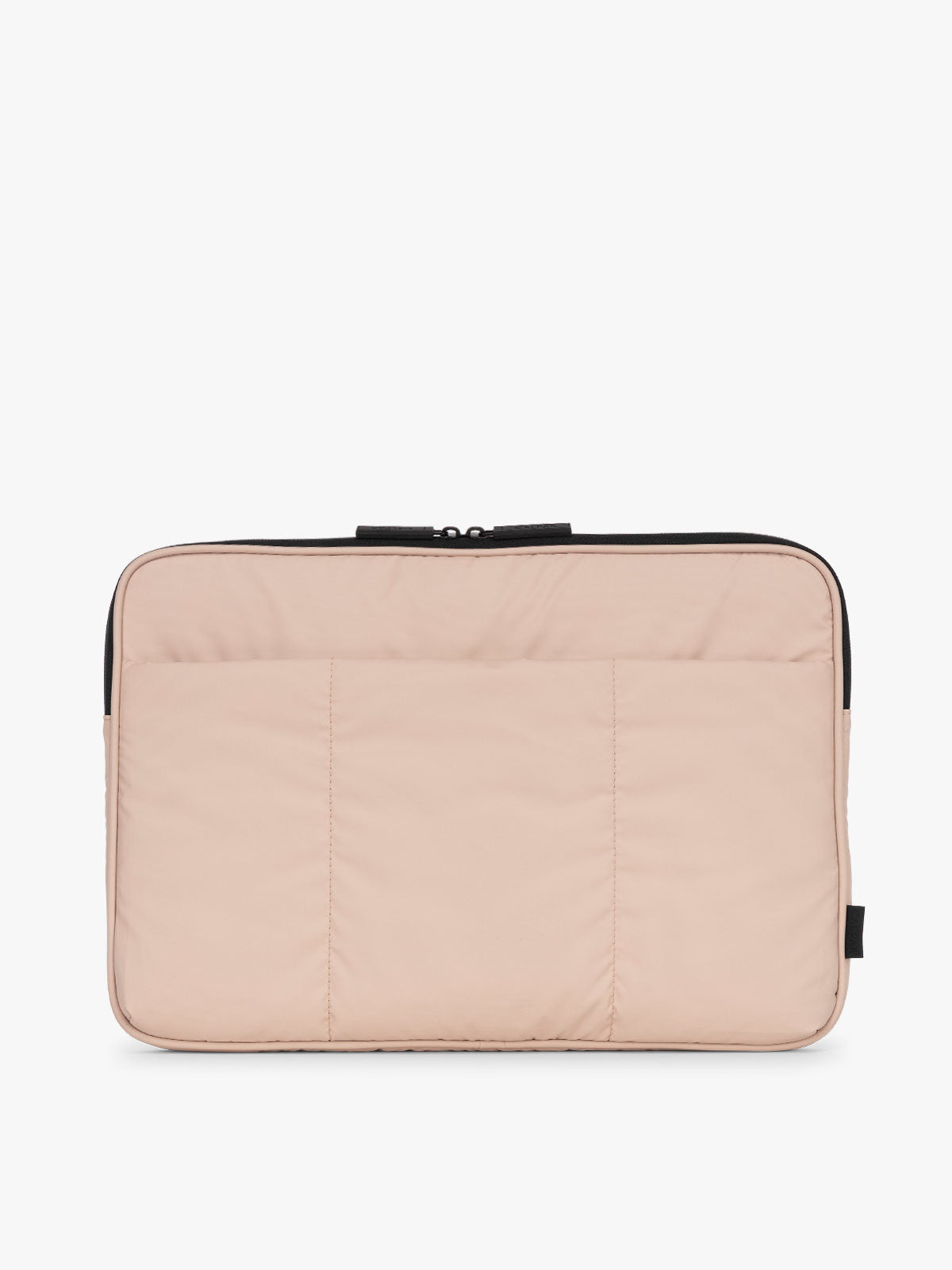 Protect your tech in style with our padded laptop case. Made to fit laptops up to 17 inches, our laptop sleeve features a soft, puffy exterior, a scratch-resistant faux suede lining, and is thoughtfully designed with multiple exterior pockets to hold all your device essentials.