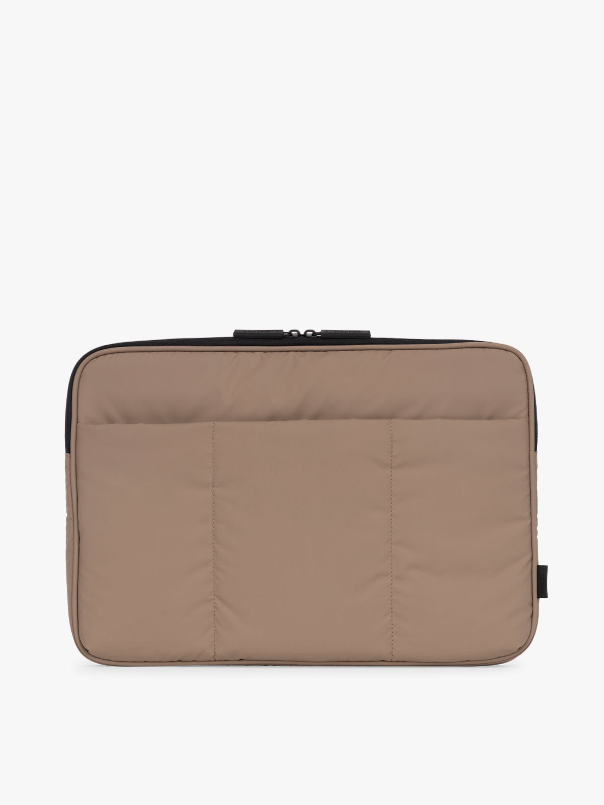 Protect your tech in style with our padded laptop case. Made to fit laptops up to 17 inches, our laptop sleeve features a soft, puffy exterior, a scratch-resistant faux suede lining, and is thoughtfully designed with multiple exterior pockets to hold all your device essentials.