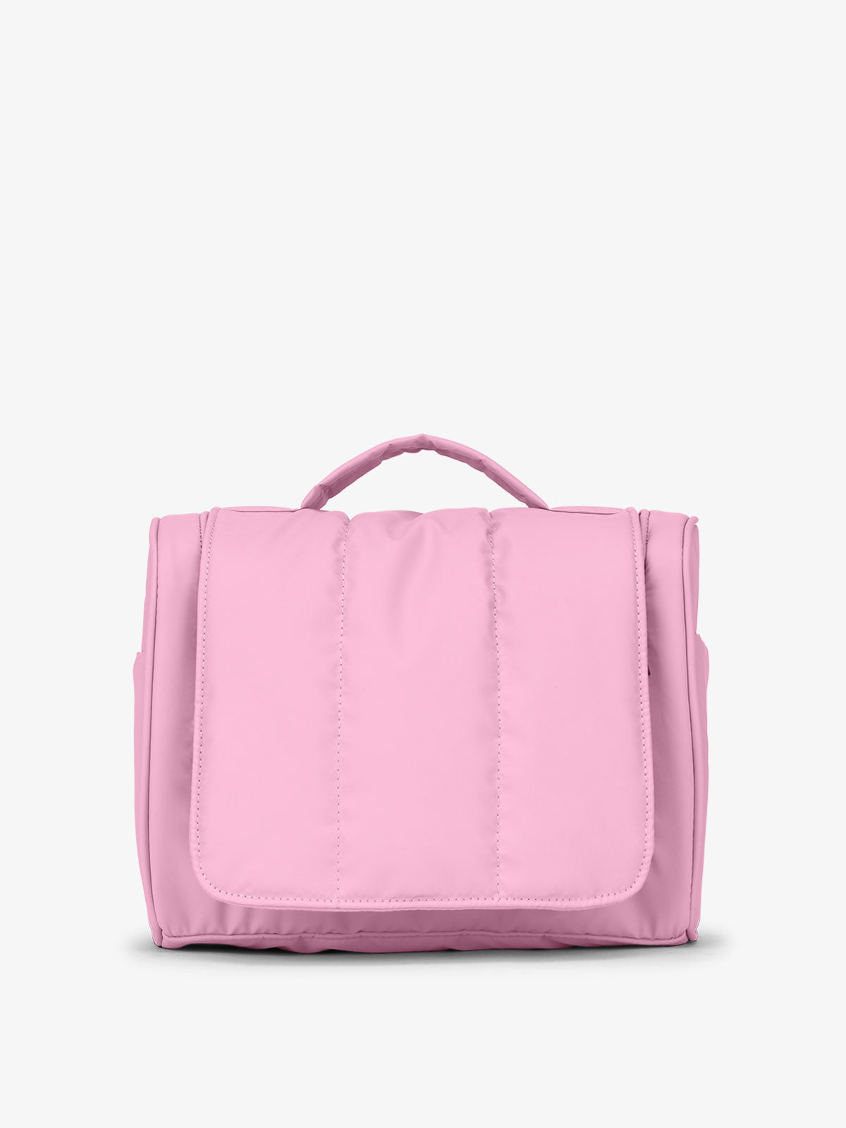 This hanging travel toiletry bag features a retractable hook, which you can hang anywhere from showers to towel racks—or even on a nearby tree when camping or glamping! With an easy-to-clean exterior, this hanging cosmetic bag is the perfect piece to bring with you on the move, wherever you go.