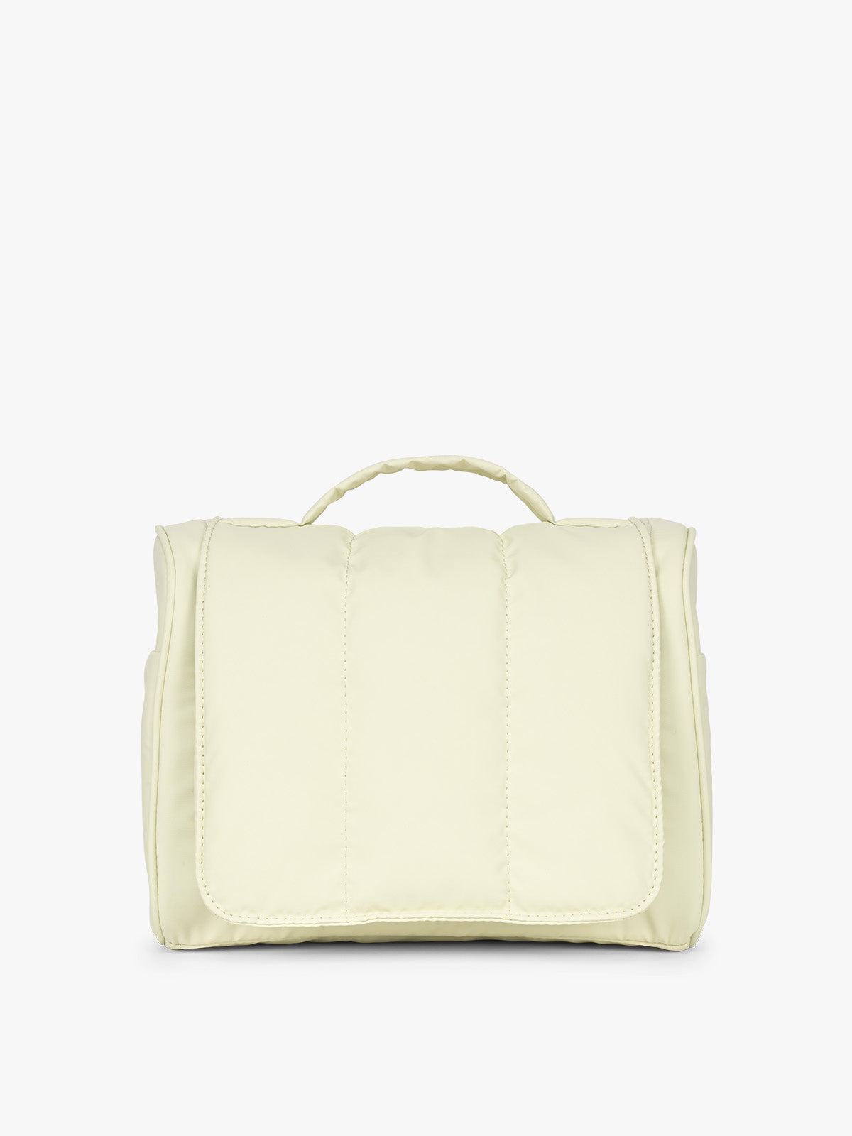 This hanging travel toiletry bag features a retractable hook, which you can hang anywhere from showers to towel racks—or even on a nearby tree when camping or glamping! With an easy-to-clean exterior, this hanging cosmetic bag is the perfect piece to bring with you on the move, wherever you go.