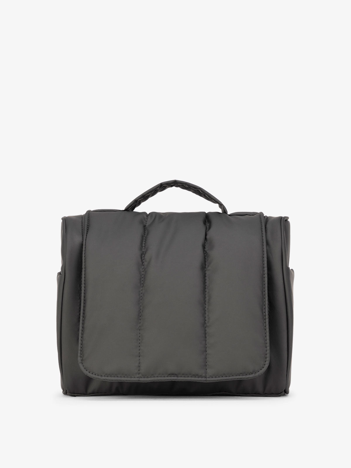 This hanging travel toiletry bag features a retractable hook, which you can hang anywhere from showers to towel racks—or even on a nearby tree when camping or glamping! With an easy-to-clean exterior, this hanging cosmetic bag is the perfect piece to bring with you on the move, wherever you go.