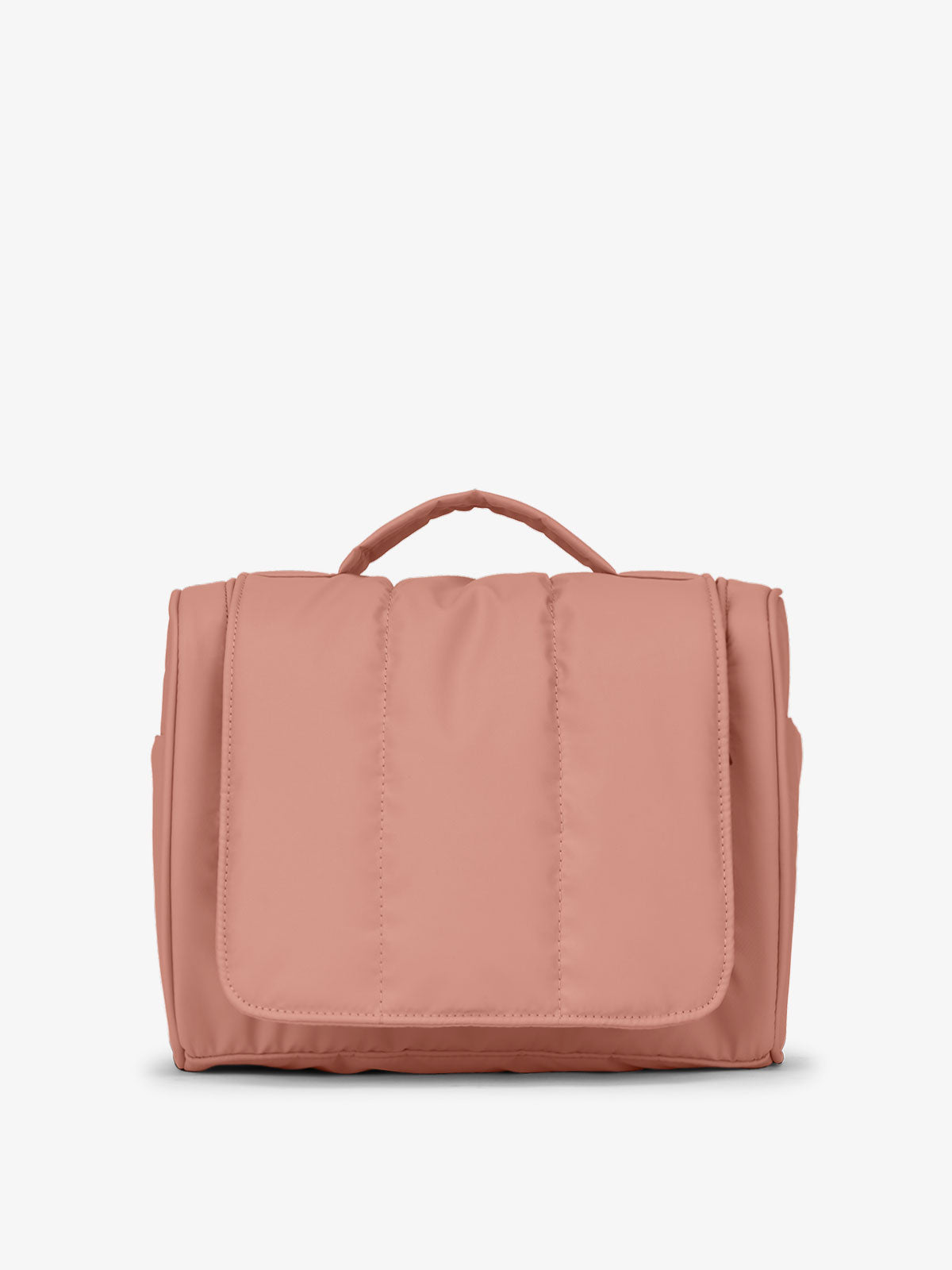 This hanging travel toiletry bag features a retractable hook, which you can hang anywhere from showers to towel racks—or even on a nearby tree when camping or glamping! With an easy-to-clean exterior, this hanging cosmetic bag is the perfect piece to bring with you on the move, wherever you go.