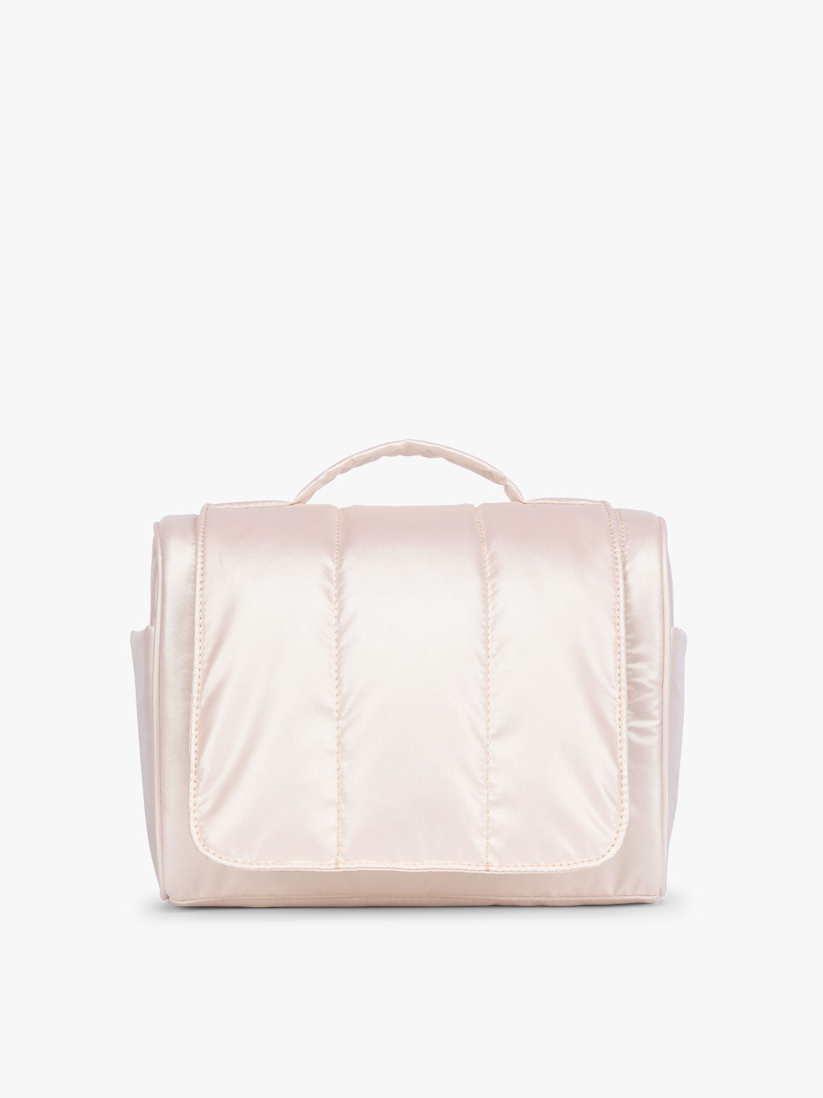 This hanging travel toiletry bag features a retractable hook, which you can hang anywhere from showers to towel racks—or even on a nearby tree when camping or glamping! With an easy-to-clean exterior, this hanging cosmetic bag is the perfect piece to bring with you on the move, wherever you go.