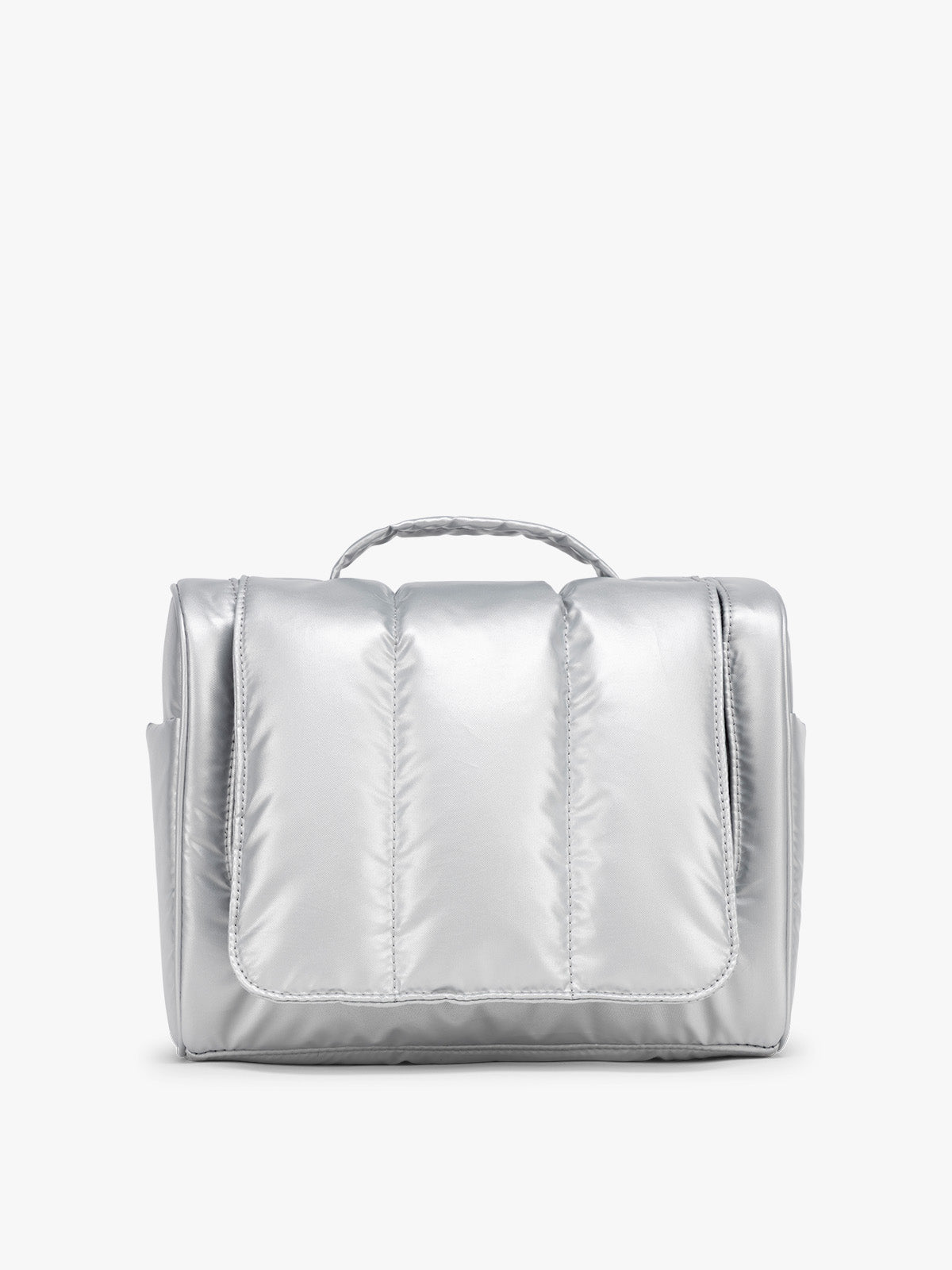This hanging travel toiletry bag features a retractable hook, which you can hang anywhere from showers to towel racks—or even on a nearby tree when camping or glamping! With an easy-to-clean exterior, this hanging cosmetic bag is the perfect piece to bring with you on the move, wherever you go.