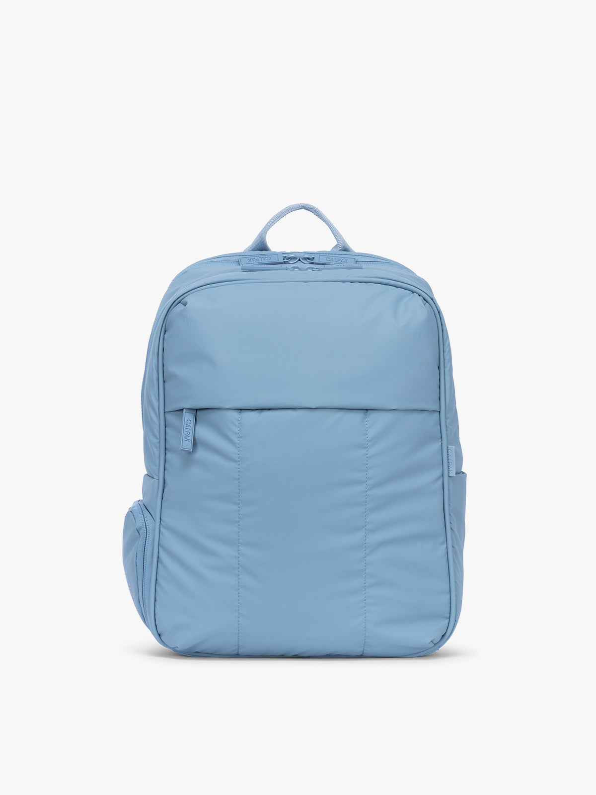 CALPAK Luka Duffel Zip Bag Charm in white and blue gingham print in French Blue Gingham; ALK2501-FRENCH-BLUE-GINGHAM view 1 CALPAK Luka Duffel Zip Bag Charm in white and blue gingham print in French Blue Gingham; ALK2501-FRENCH-BLUE-GINGHAM view 2