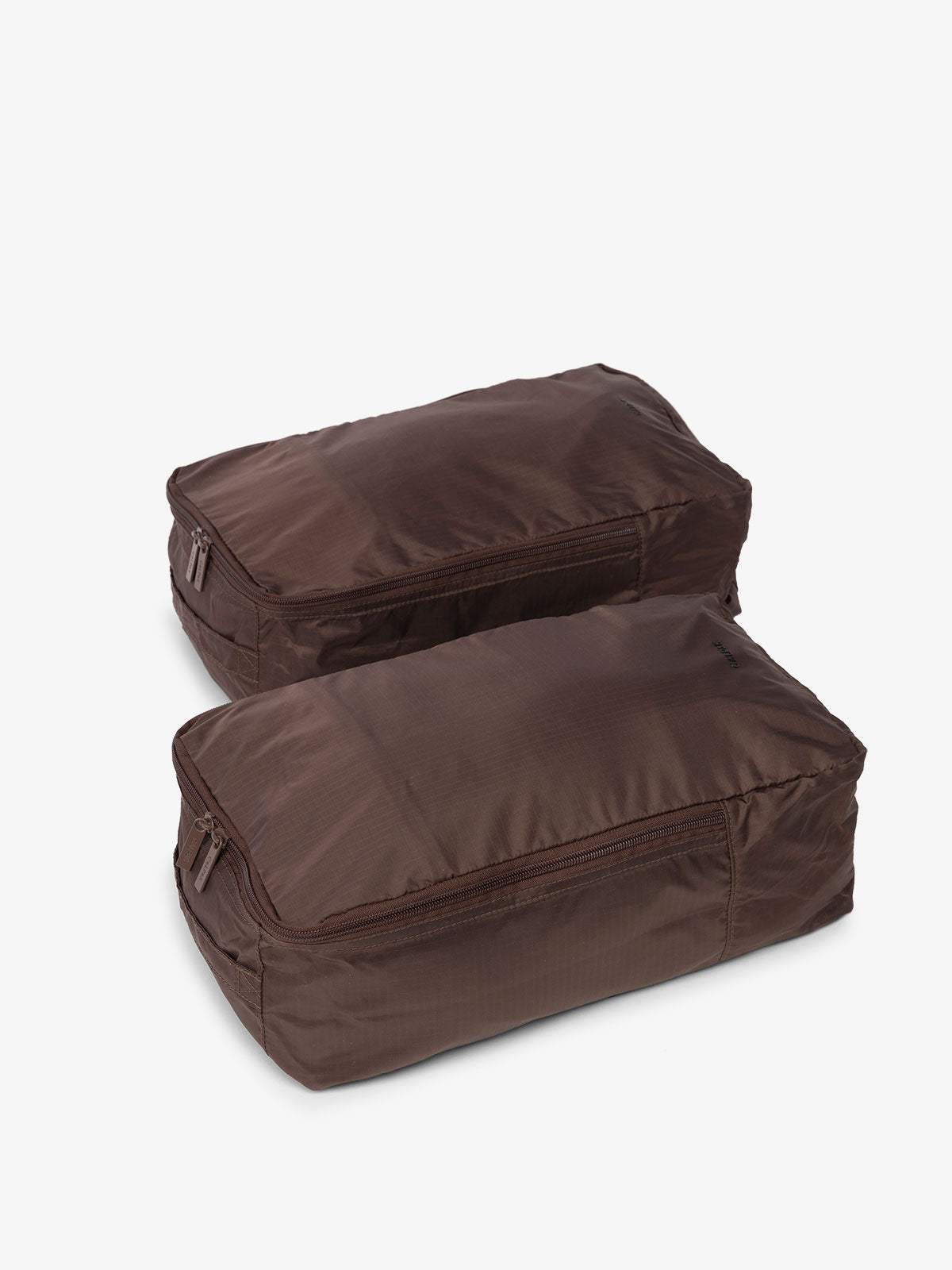• Step up your organization game with our Shoe Cubes. Whether for separating shoes in your carry-on or storing them at home, these bags offer both functionality and style. Constructed from easy-to-clean material and designed to be compact, they're perfect for travel without adding bulk. Sized to accommodate standard men’s shoe sizes, they're versatile for various footwear types. Whether on the road or in your closet, these shoe bags are a smart choice to keep you organized and stylish.