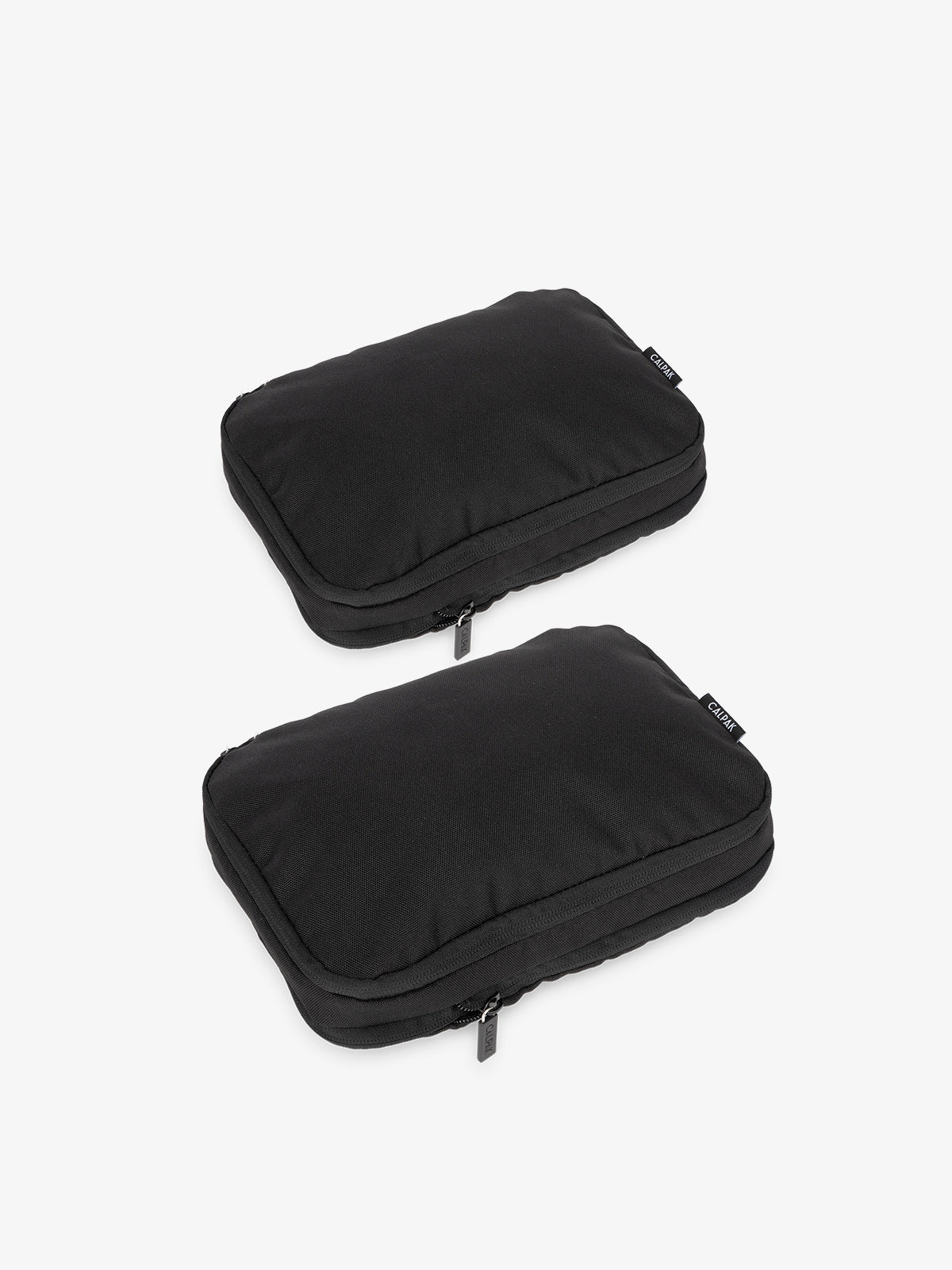 Discover the convenience of packing light with our 2-piece set of Small Compression Packing Cubes. These compact organizers expand up to 4.5" and are crafted from ultra-durable polyester material. Perfect for separating intimates from athletic wear, these cubes are ideal for 1-2 day trips. With compression packing cubes for travel, staying organized has never been easier.