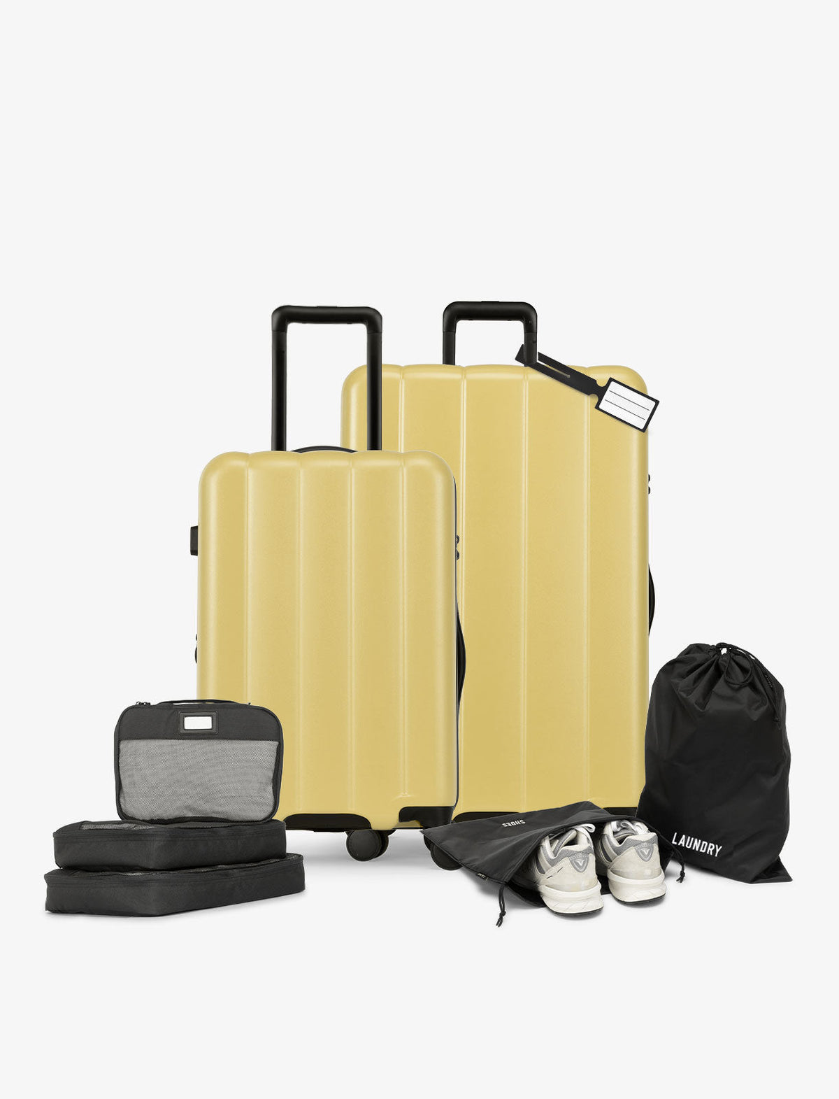 Complete 8-Piece Set: Includes a Carry-On, Large Check-In suitcase, 5-piece packing cube set, and a luggage tag for ultimate organization