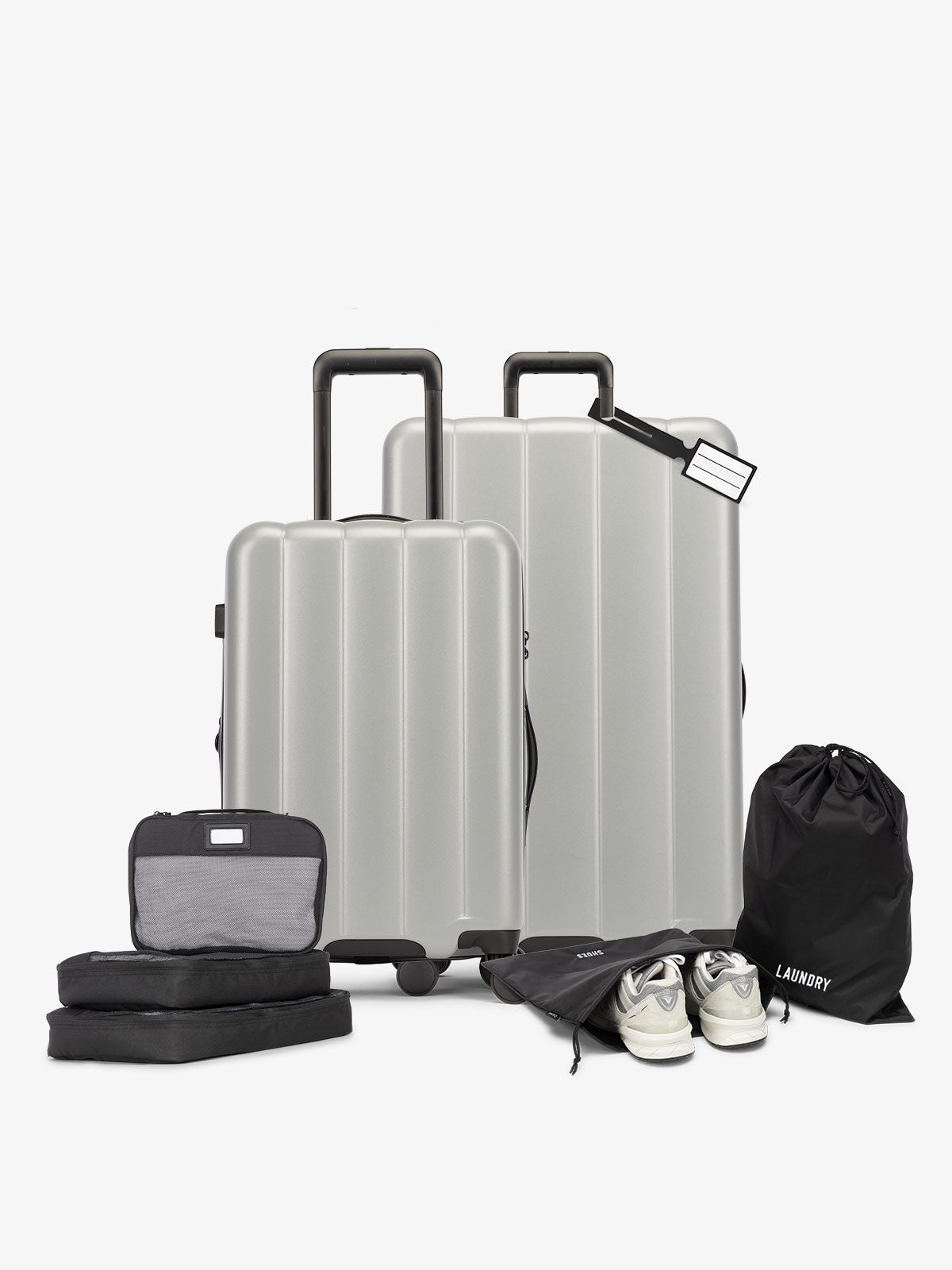 Complete 8-Piece Set: Includes a Carry-On, Large Check-In suitcase, 5-piece packing cube set, and a luggage tag for ultimate organization