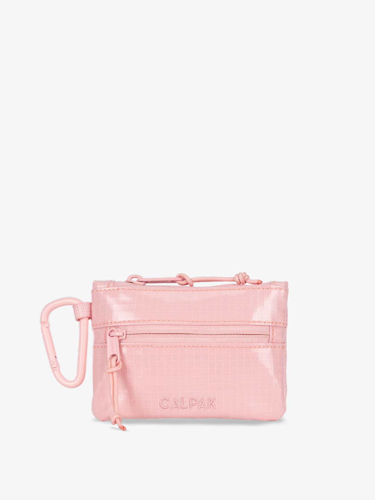 Keep your cash and cards right where you need them with our clippable card holder. Made from recycled fabrication, it features zippered front and top pockets and a coordinating carabiner. Secure this card holder wallet to your bag, belt loop and even your keys for hands-free convenience and easy access to your I.D. and more.