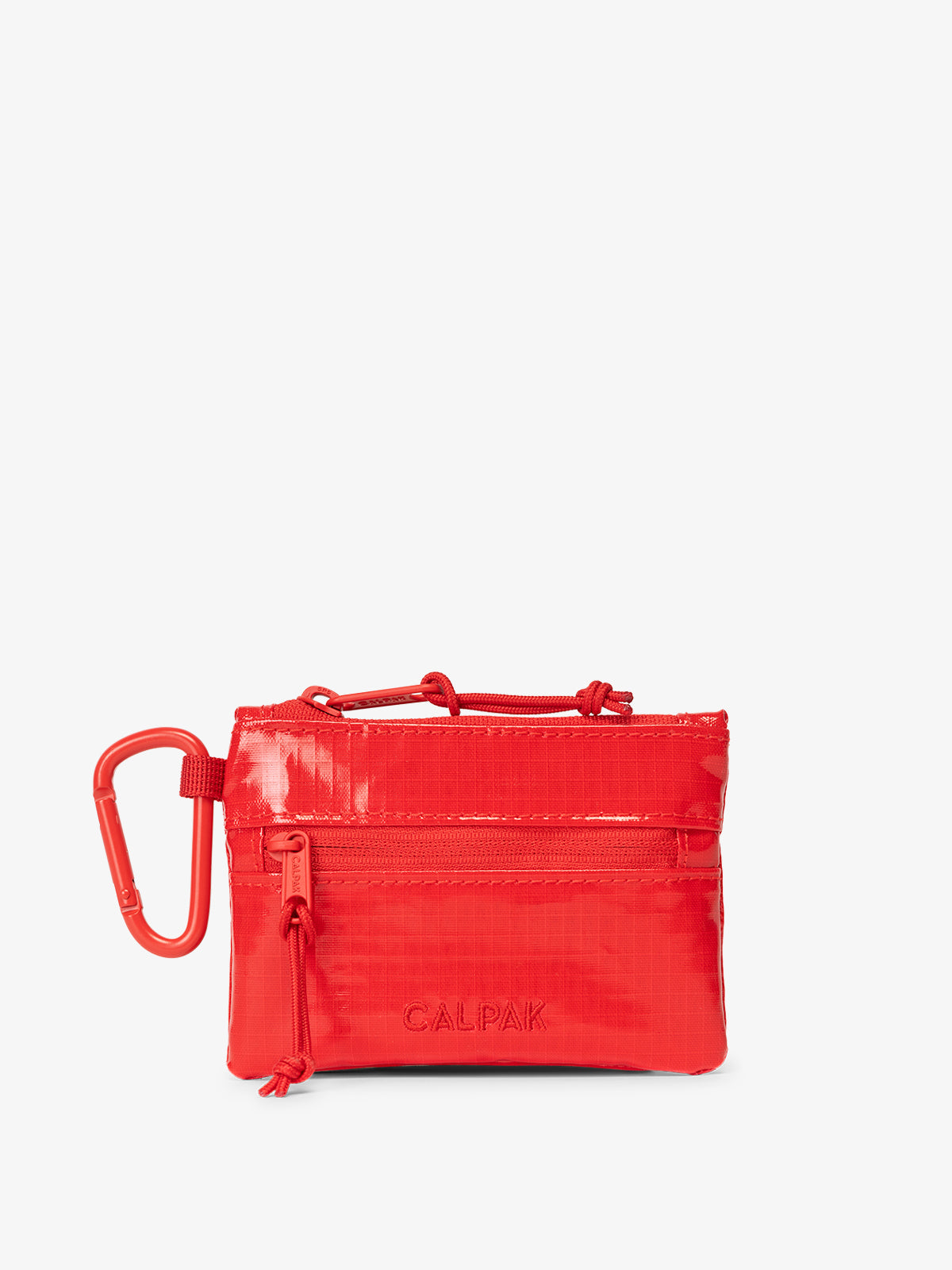 Keep your cash and cards right where you need them with our clippable card holder. Made from recycled fabrication, it features zippered front and top pockets and a coordinating carabiner. Secure this card holder wallet to your bag, belt loop and even your keys for hands-free convenience and easy access to your I.D. and more.