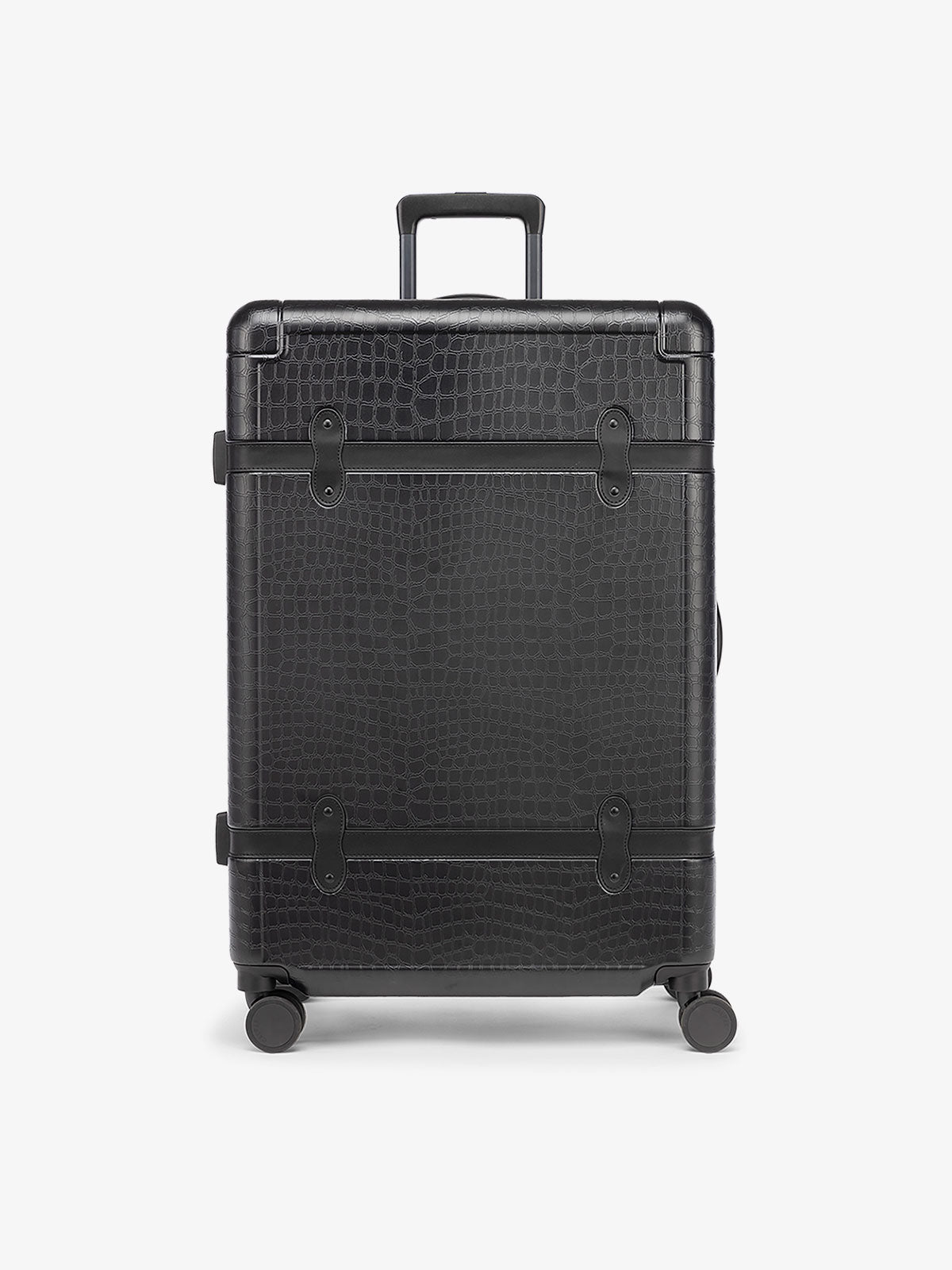 Discover the perfect blend of vintage charm and contemporary functionality with our Trnk Collection. This large 29-inch rolling luggage piece showcases a sleek hard shell adorned with a faux crocodile design, ensuring you travel in style. Equipped with spinner wheels, a built-in TSA-approved lock, and convenient pocket dividers, it offers both convenience and sophistication. With its expandable feature, you'll have ample space for all your essentials. Explore the world with confidence, knowing that our Trnk Collection has you covered for all your travel needs.